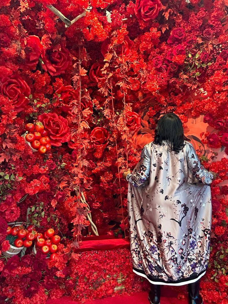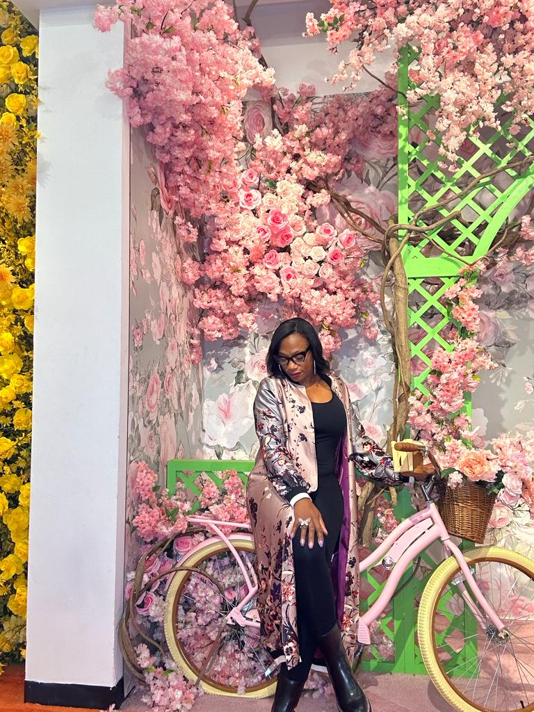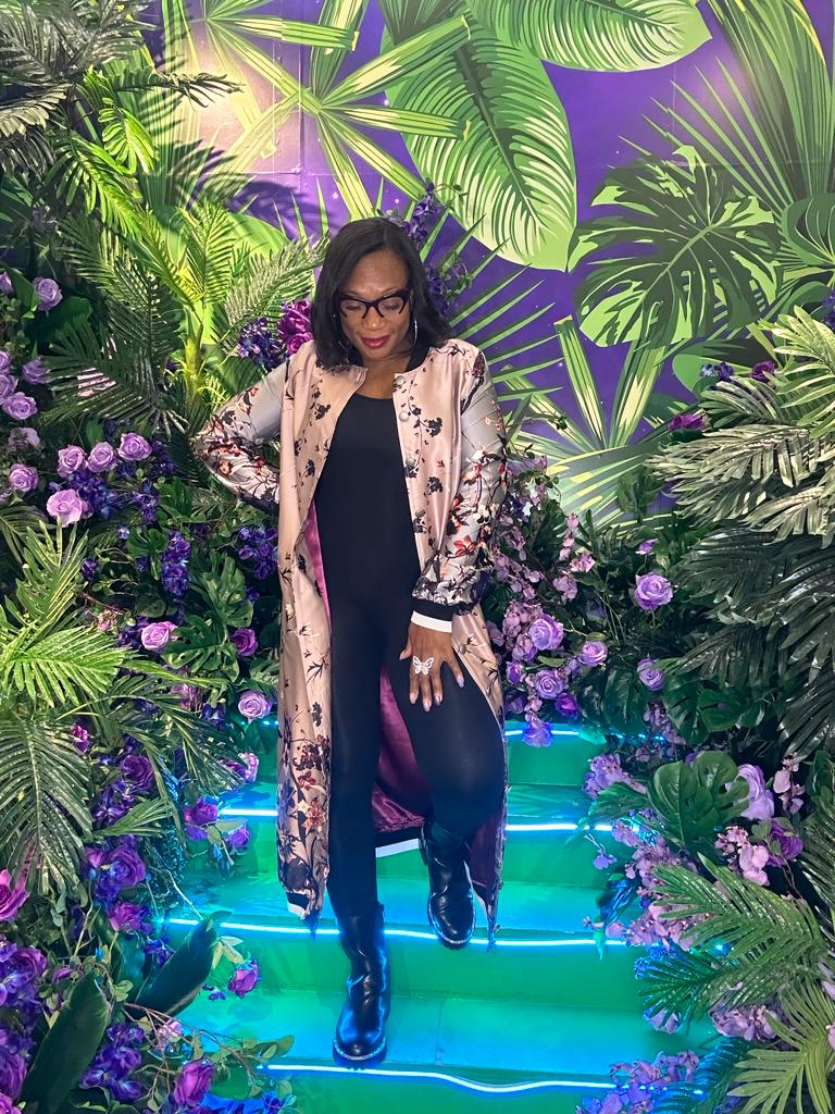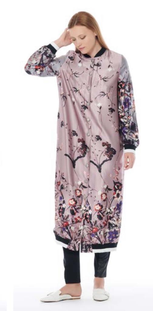 Mauve floral print satin long baseball jacket